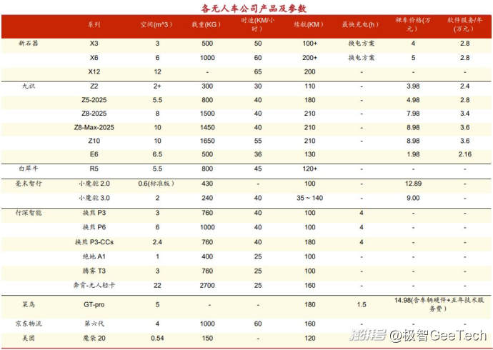 2018-2023年间,新石器核心车型X3的单车成本从初代20万元降至7万元;2024年6月,九识智能部分产品价格降至5万元,2025年5月进一步下降至2万元。这一成本下降曲线背后是技术路线优化、硬件国产化与规模化生产的共同效应。