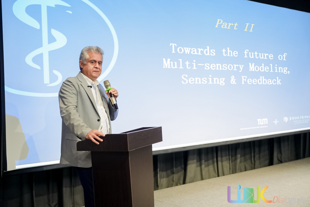 “外科医生在做手术的时候,90%的感知来自视觉”,Nassir Navab教授在演讲中提到。然而,在现代医学影像技术(如CT、MRI、超声)的加持下,信息早已远超视觉所能高效处理的范畴,“如果把十种不同传感器的信息都只通过视觉呈现,医生会因为信息过载而忽略要点”。他的研究正是要突破这一局限,为手术赋予全新的AI“感官”。