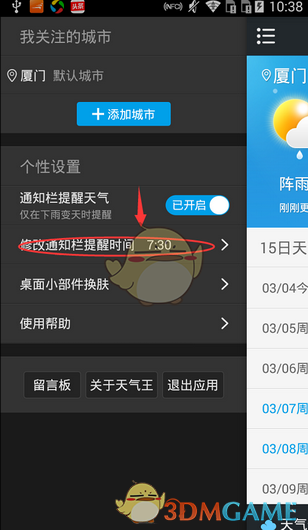 3、点击【修改通知栏提醒时间】可以设置提醒时间。