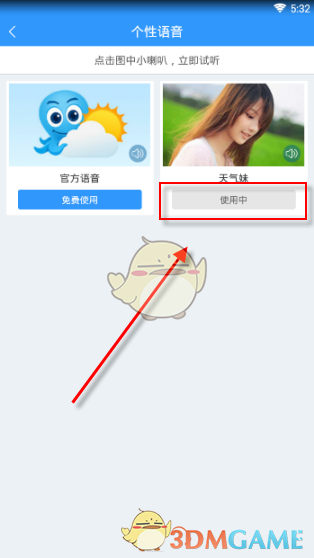 4、下载完成后,系统自动使用个性化语音包。