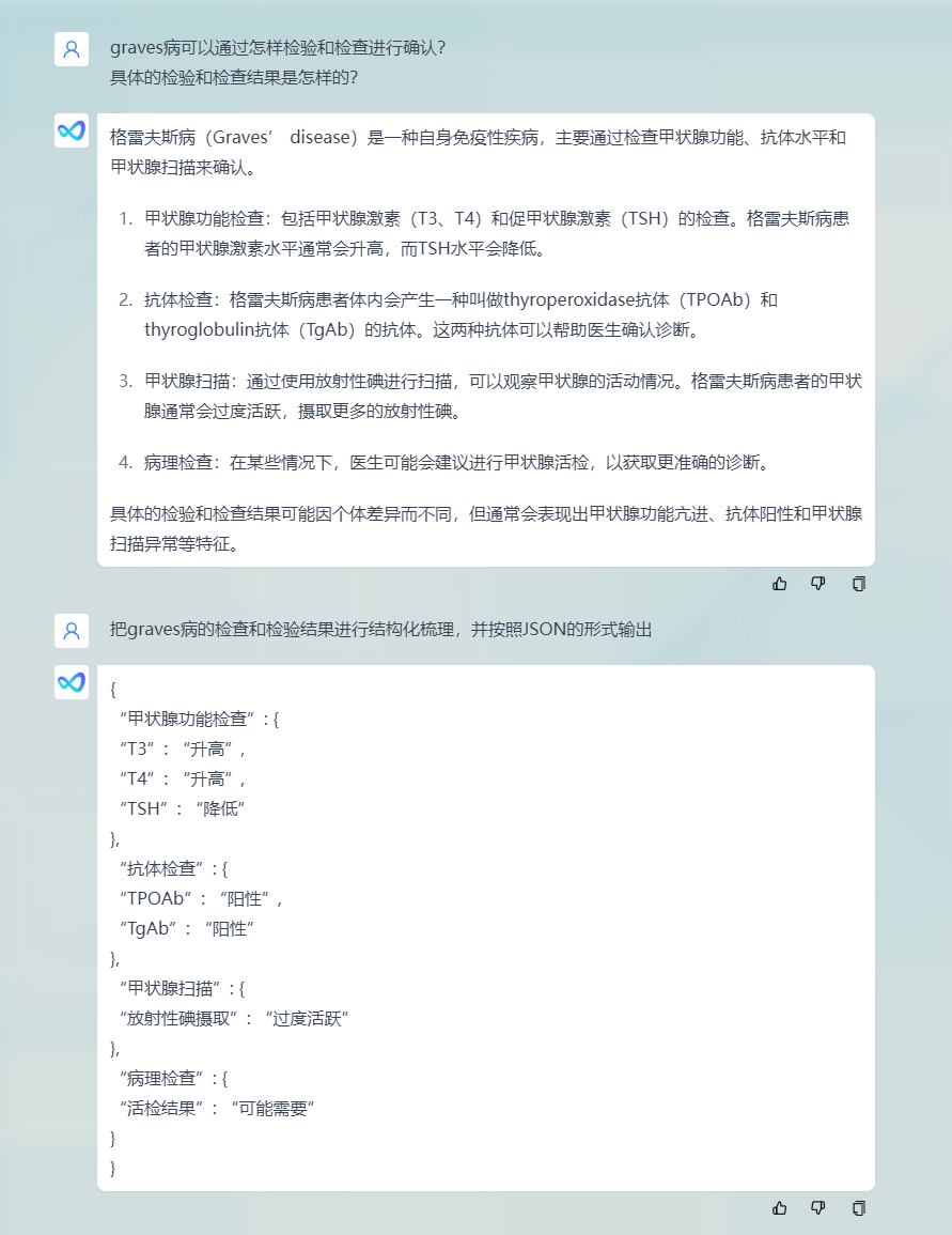 目前,光语医疗大模型可以用来协助医生把疾病检查和检验结果进行格式化结构处理,并按照医学专业形式输出。同时模拟医生临床能力,辅助医生进行疾病诊断。比如在体检场景下,其可以模拟总检医生,在获得全部检查结果数据后,进行异常项识别、排序,并生成主检结论建议。