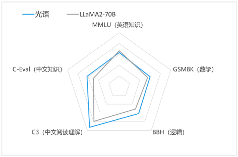 据介绍,光语医疗大模型在通用能力测评中,中文知识、数学、阅读理解、逻辑推理等方面的表现均大幅领先Meta公司研发的开源大模型LLaMA2-70B。在USMLE医疗行业测评中(USMLE为美国执业医师资格考试,是通往美国临床执业的唯一路径),光语医疗大模型与GPT-4能力相当。