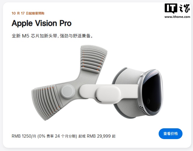 alixixi 10 月 22 日消息,2025 款苹果 Vision Pro 头显今日发售,国行定价 29999 元起,该产品此前已于 10 月 17 日上午 9 点接受预购。