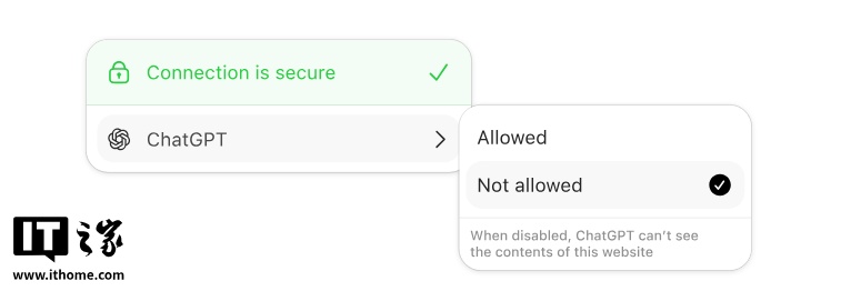 隐私方面,用户能够决定 ChatGPT 可以访问哪些网站,并清除浏览历史、使用隐身模式,并随时管理浏览器记忆。