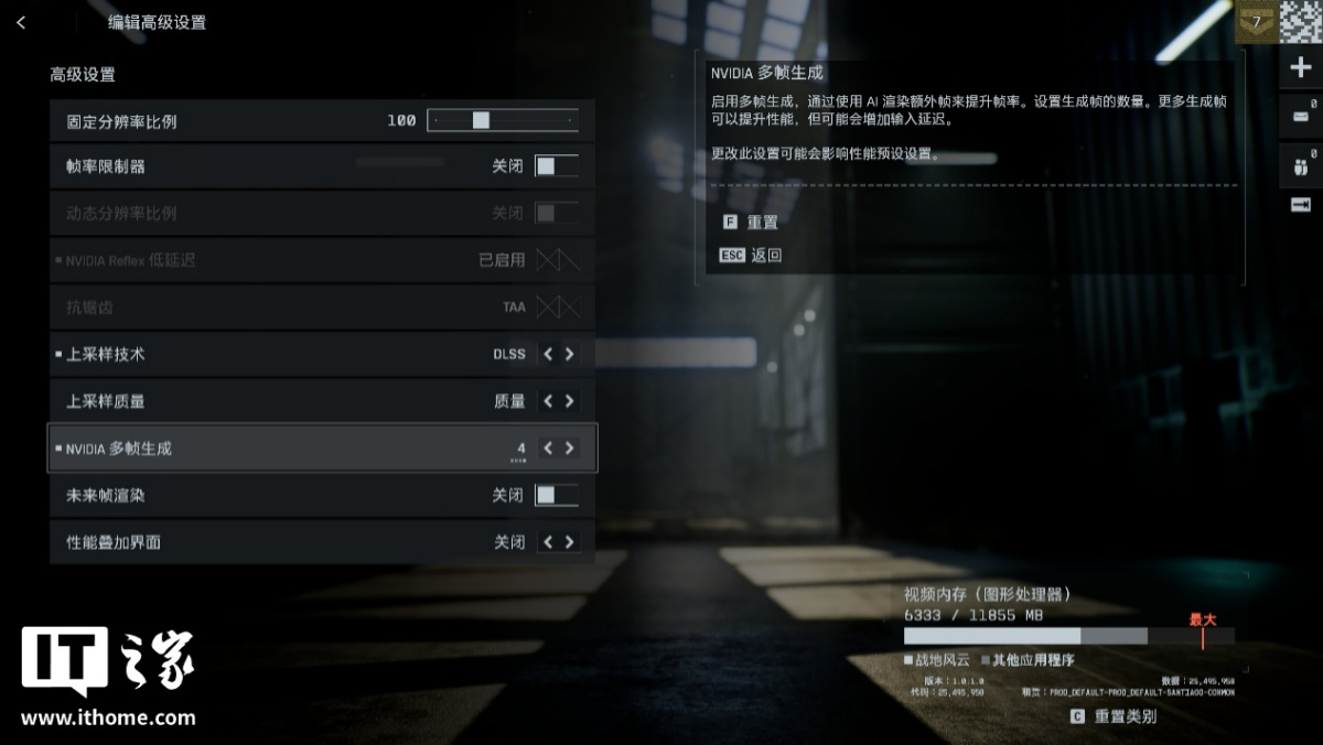 难能可贵的是《战地风云 6》目前已经支持主流处理器和显卡的帧生成技术,包括 DLSS、FSR 和 XESS。我们会依次测试 4K、2K 和 1080P 这 3 种分辨率下的 DLSS 4 效果。