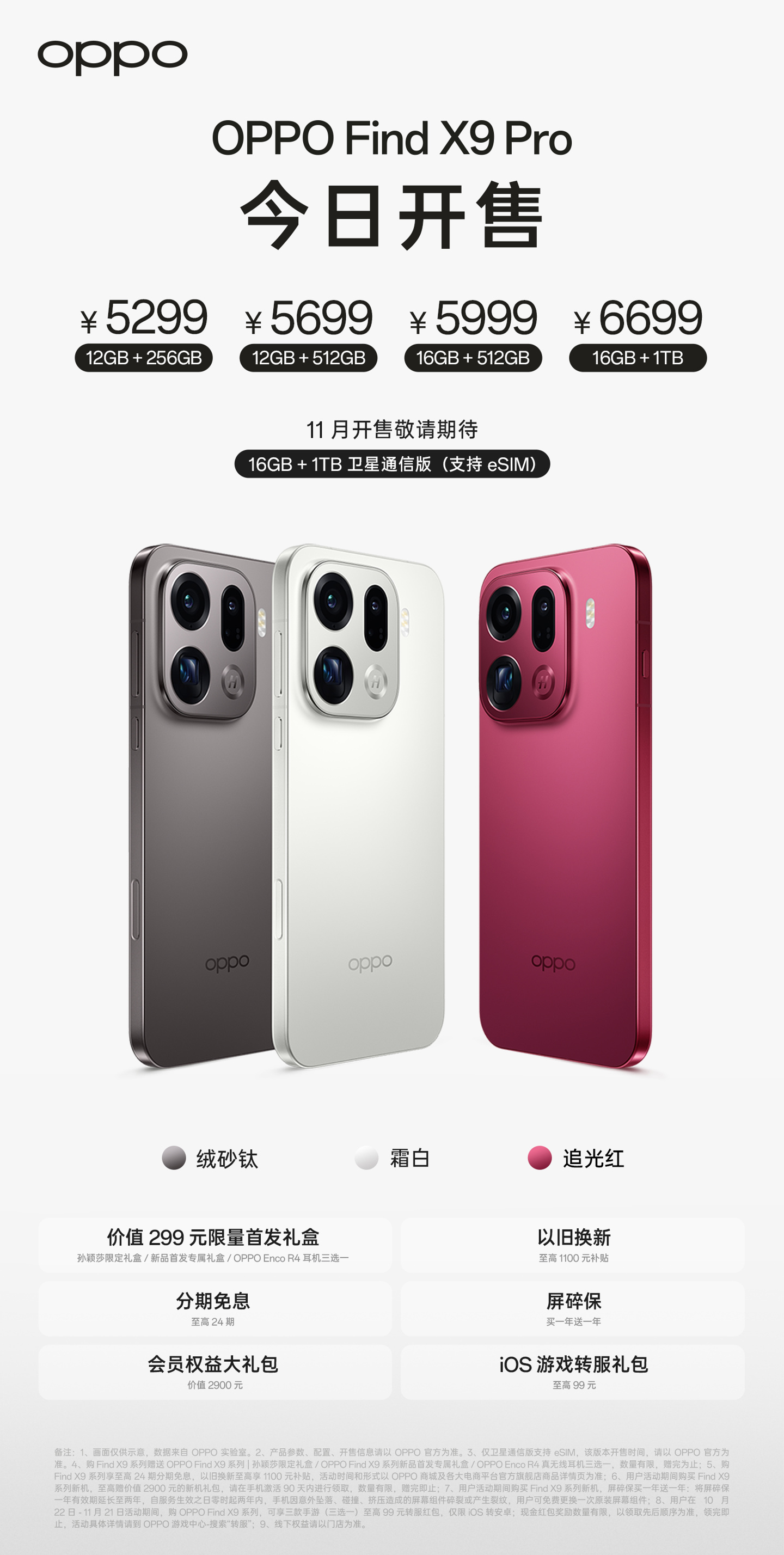 alixixi 10 月 22 日消息,OPPO Find X9 系列手机今日正式开售。