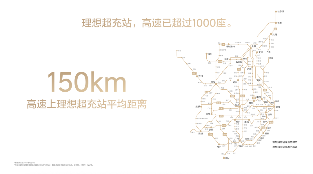 高速场景:建成 1000 + 座高速站,“九纵九横”18 条国家级高速贯通,平均每 150 公里就有一座理想超充站。理想 i8 充电 10 分钟,续航 500 公里,一杯咖啡的时间就能出发。