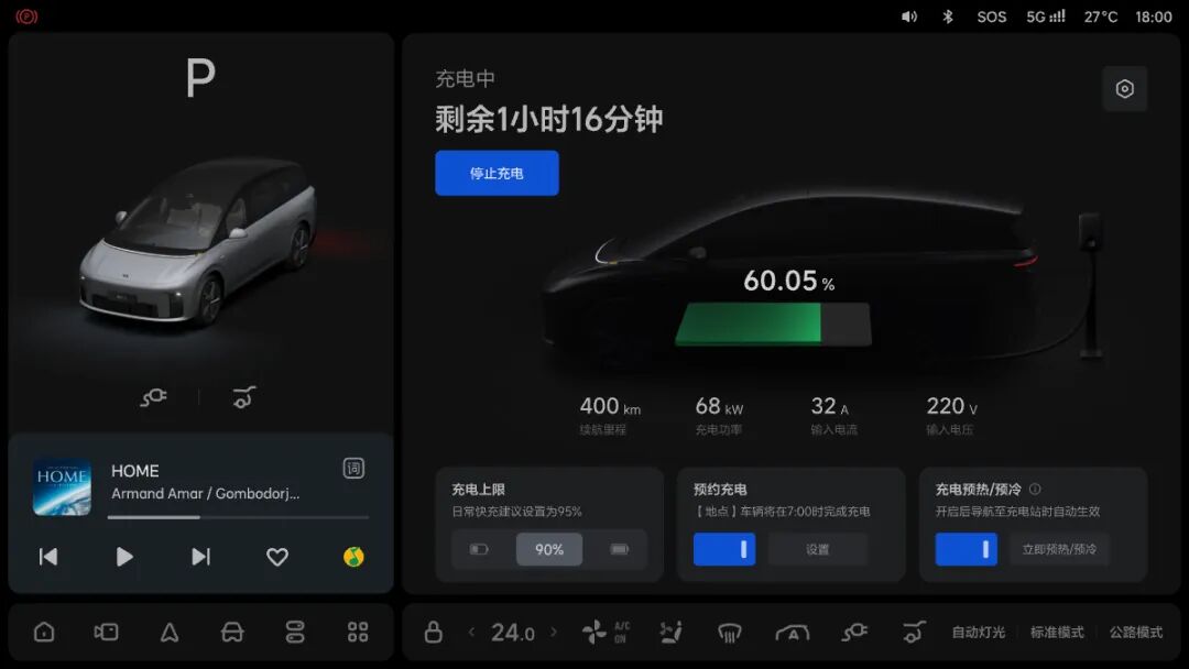理想 i8 配备了电池保温功能,需配合家充桩,适合在冬季使用。该功能可以在车机充电管理界面中,点击位于右上角的设置按键开启,充电完成后电池将继续保温,保证用车时电池恰好处于最佳工作温度。