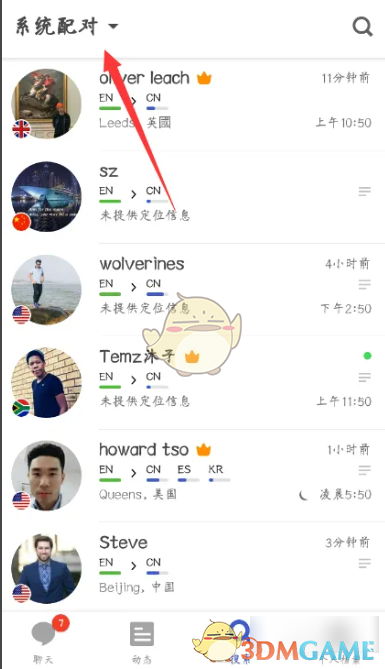 在HelloTalk中关注用户,可先打开应用进入首页,点击页面下方的【搜索】,再点击左上角的【系统配对】并选择【在线】,这样搜索出的都是正在线上的用户,选择任意想关注的用户后,点击右下角的【+关注】,显示【正在关注】即成功关注对方。