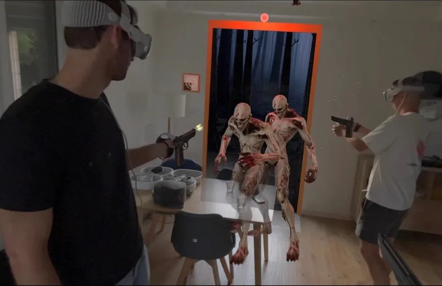 《Spatial Rifts》是一款利用混合现实技术的射击游戏,曾在苹果M5 Vision Pro发布会上亮相。它支持单人和多人合作模式,多人合作模式可通过SharePlay支持最多五人同时在线。
