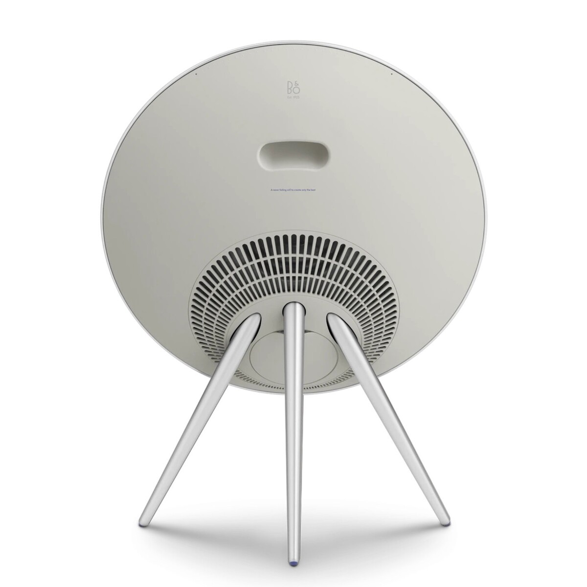 这款直径 70 厘米的圆形音箱,采用了银色铝制外壳、金属支脚和丹麦纺织品牌 Kvadrat 提供的深蓝色织物罩面。其内部集成了包括一个 200 毫米低音单元在内的七个驱动单元,总功放输出功率高达 1500 瓦,并支持根据房间环境自动优化声音表现。