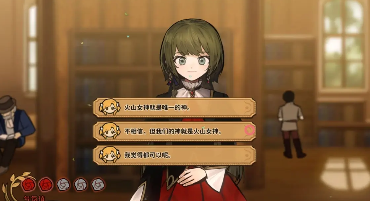 在谈及信仰话题时,玩家则需要回复“不相信神,但我们的神就是火山女神”。