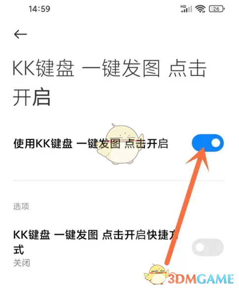6、打开“使用kk键盘一键发图”开关,即可开启一键发图权限。