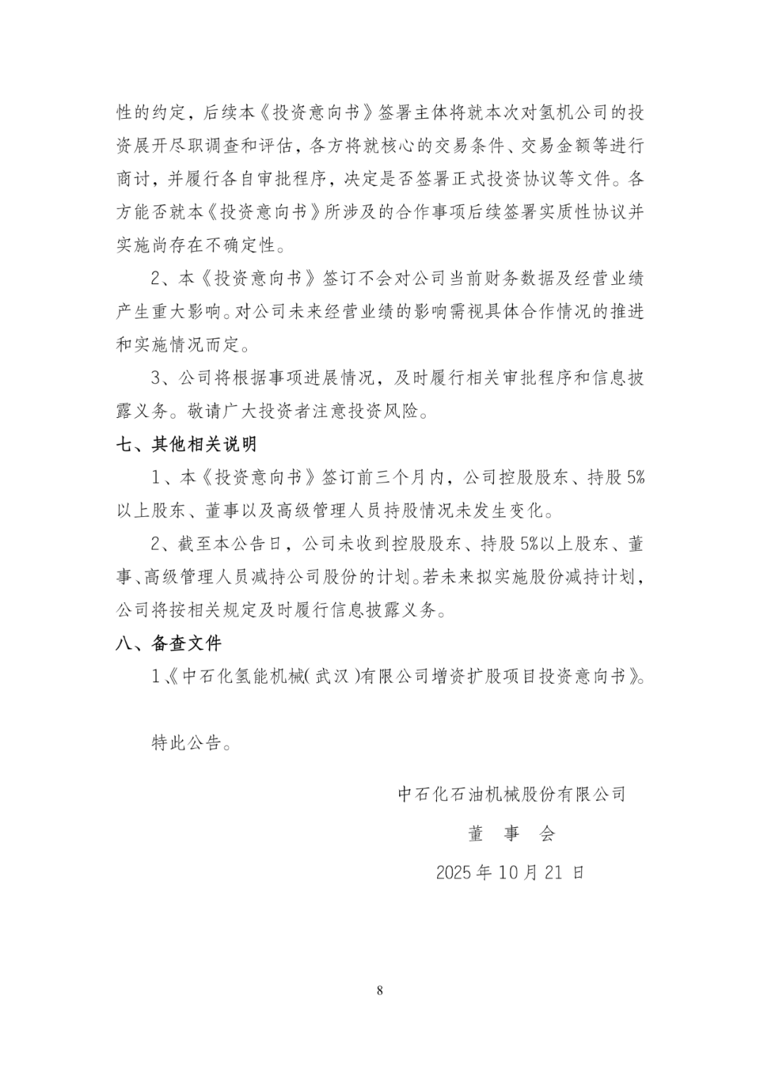 4、本次增资扩股后不改变石化机械对氢机公司的控股地位。