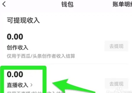 进入钱包,选择【直播收入】。