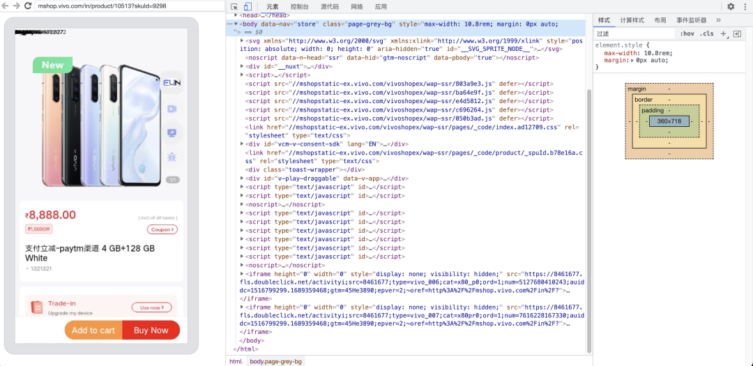 第三步:远程查看,点击上一步骤中的inspect按钮,可以进入如下调试页面。