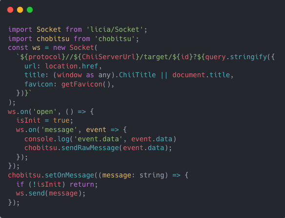 第二步:在客户端需要调试的网页中注入target.js 脚本,该脚本会创建 WebSocket 连接,通过订阅发布来监听DOM、Log、Network、Css、Storage、Debug等相关操作指令。