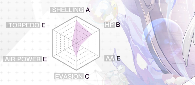 从属性配置来看,其六维数据表现为炮击A、耐久B、机动C,其余三项均为E级。作为超稀有的主力风帆舰,属于典型的后排输出单位,俗称“金大炮”。但与传统战列舰或战巡不同,风帆舰普遍具备较低的生存能力,缺乏防空武器与防空数值,在面对空袭时极为脆弱,因此需要良好的阵容保护。其输出核心依赖技能机制与主炮强化效果来实现爆发。