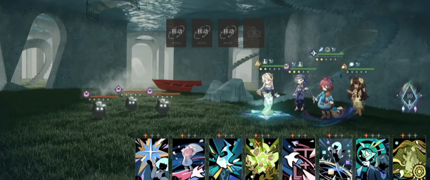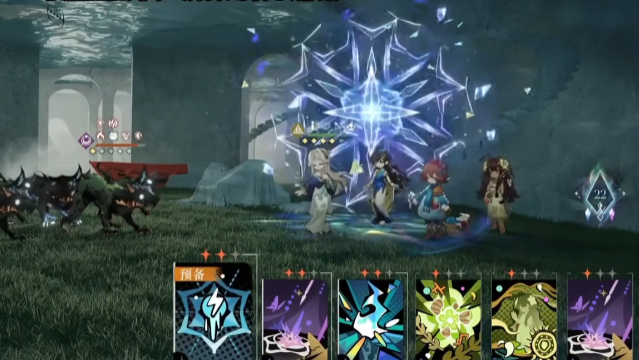 每个回合开始时,她还将根据当前“流溢”颜色抽取一张对应的“各色流溢”特殊咒语。例如选择紫色流溢时,可能获得“预见”效果,降低释放“劫数难逃”所需的“余辉”门槛,从而提高大招的触发频率。若队伍中存在多个相同颜色的“流溢”配置,则抽中对应咒语的概率也会随之上升。