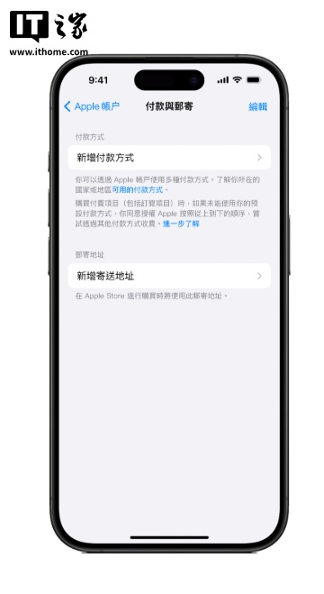 在 iPhone 上打开“设置”,选择你的 Apple 账户并选择“付款与邮寄”按钮,可能会出现弹窗要求输入密码。