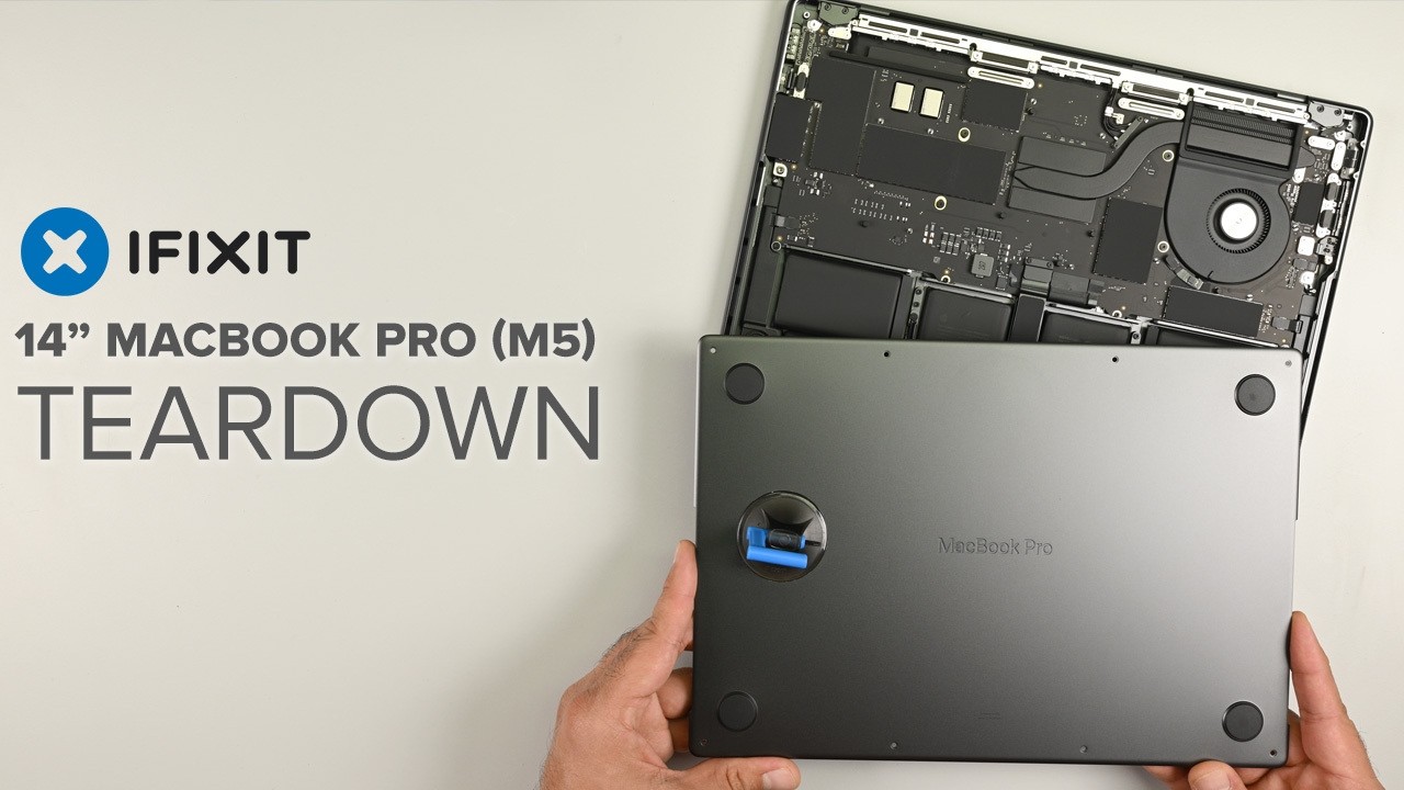 alixixi 10 月 25 日消息,维修机构 iFixit 昨日(10 月 24 日)发布博文,完整拆解苹果 14 英寸的 M5 MacBook Pro,最终给出的可维修得分为 4 分(满分为 10 分,分数越高代表越容易维修),评价其为“渐进式进步,而非革命”。
