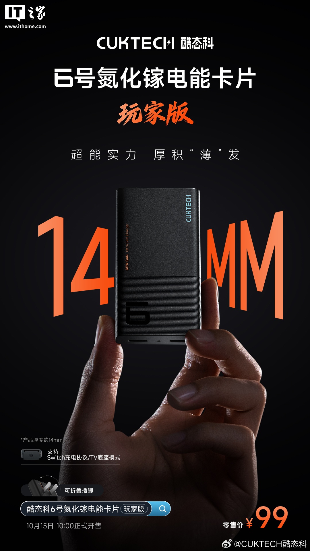 alixixi注意到,本月酷态科推出了首发价 299 元的 10 号电能充二合一 Fusion、首发价 99 元的 6 号电能卡片 「玩家版」充电器、首发价 399 元的 15 号超级电能站等一系列新品。