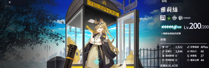 雅莉丝的定位是范围压制型远程角色。她的技能冷却虽长,但能在大范围内连续攻击,清理效率极高。BLADE技能前后兼顾,先释放一次打击,再在退场时追加十余次攻击,覆盖极广。她的被动让她开场自带半槽BLADE,能更快进入爆发节奏。雅莉丝的优势在于群体压制力强,无论推图还是多人战斗都能稳定发挥,是清怪与牵制敌方的可靠角色。