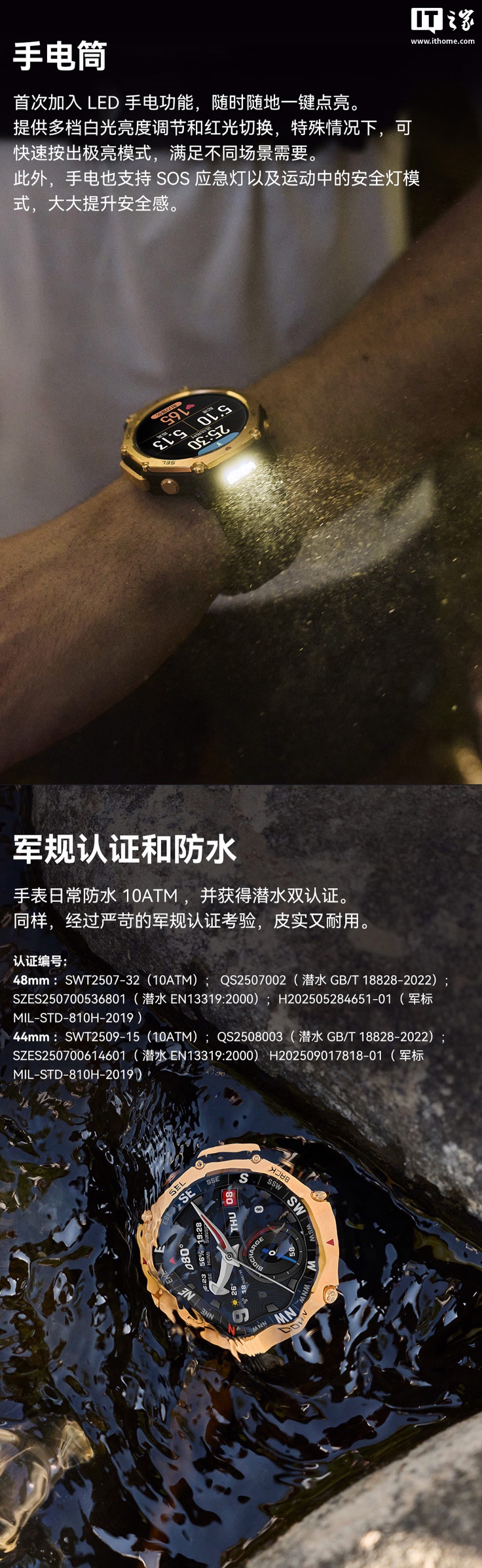 alixixi 10 月 26 日消息,华米 Amazfit 宣布为旗下 T-Rex 3 Pro 智能手表新增一款 44mm 版本,该版本手表与今年 9 月发布的 48mm 版本在外观设计上有略微差异,首发价 2305.8 元,部分地区国补后到手价低至 2178.03 元。