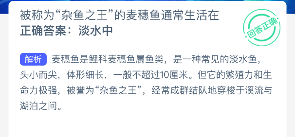 以上就是被称为“杂鱼之王”的麦穗鱼通常生活在?神奇海洋今天答案最新2025年10月25日分享,更多相关攻略内容,请点击关注阿里西西手游网更新!