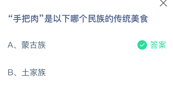 “手把肉”是以下哪个民族的传统美食?支付宝小鸡课堂开课啦!每天花一分钟答题赚饲料,喂喂小鸡就能贡献爱心啦!轻松又意义十足!2025年10月26日蚂蚁庄园的小鸡课堂题目正确答案是【蒙古族】,手把肉,又称手把羊肉或手扒肉,是蒙古族传统菜品,属蒙族菜系,以咸鲜为原味特征。