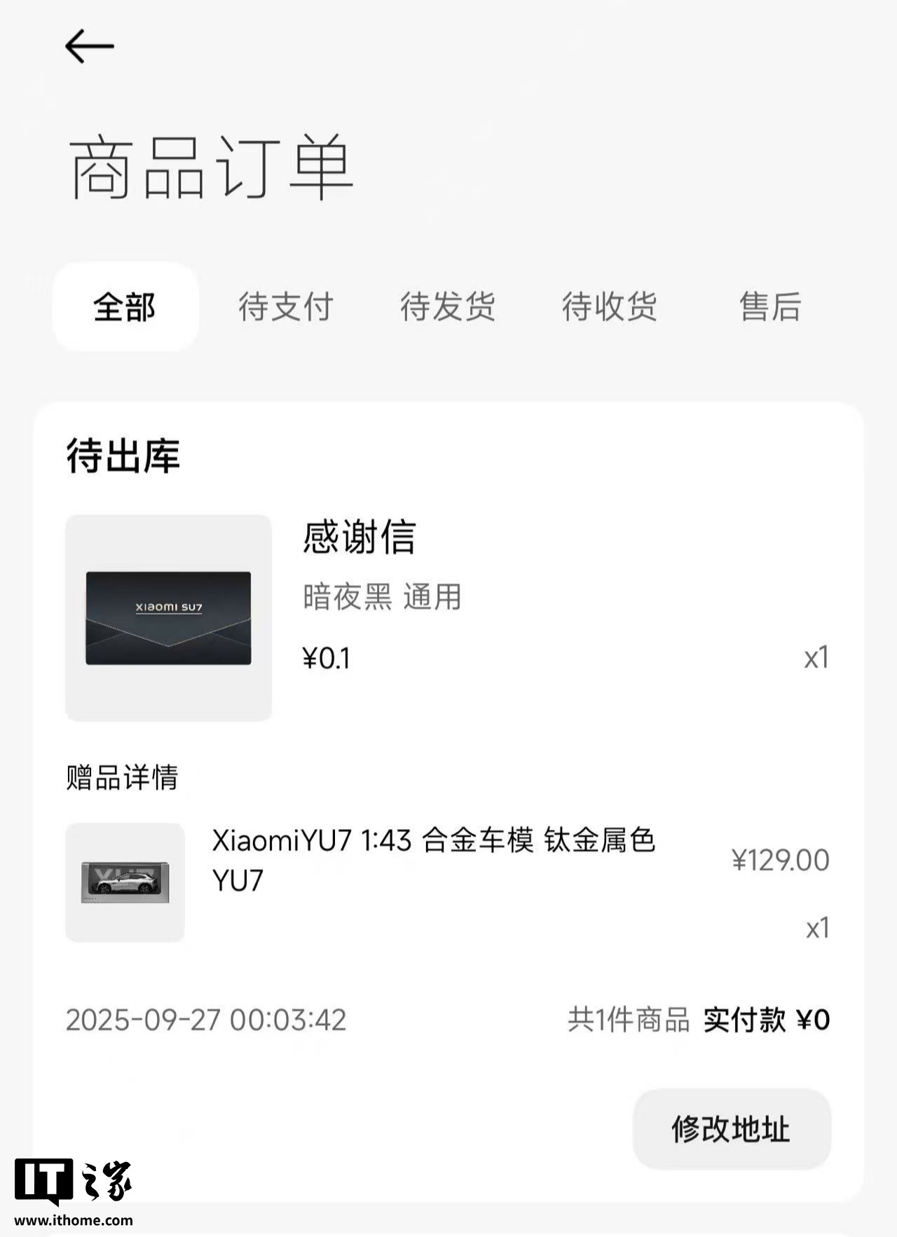 alixixi 10 月 27 日消息,小米汽车于 9 月 20 日起面向部分锁单等待的 YU7 车主推出“Xiaomi YU7 锁单等待用户关怀活动”,锁单到交付实际等待周期超过 3 个月,可能会不定期地收到小米汽车准备的小礼品。