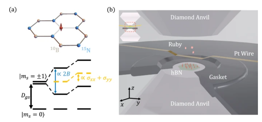 圣路易斯华盛顿大学(WashU)的一群物理学家最新开发了一种由超强力结晶氮化硼制成的量子传感器。这些传感器能够在材料承受的压力超过地球大气压 30,000 倍的情况下检测应力和磁场。