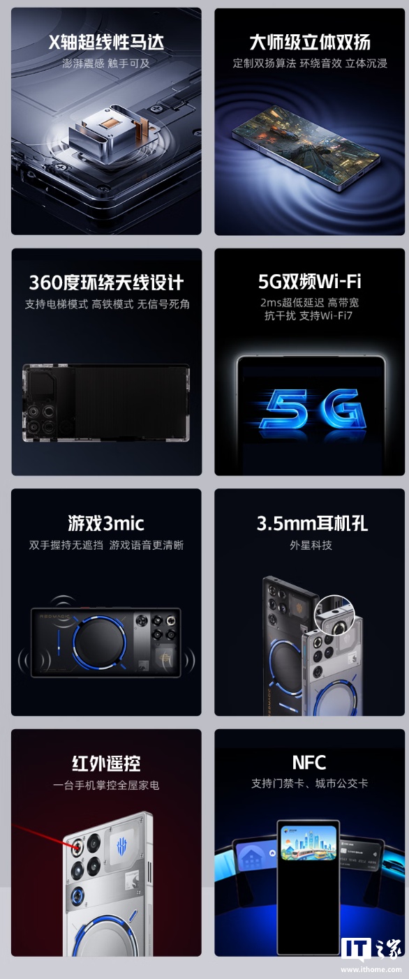 此外,这款手机还配有 7500mAh 第三代牛魔王电池,搭配 120W 魔闪有线快充 + 80W 无线快充,首次搭载心思触控芯片,瞬时触控采样率可达 3000Hz,还拥有现代手机少见的“外星科技”3.5mm 耳机孔。