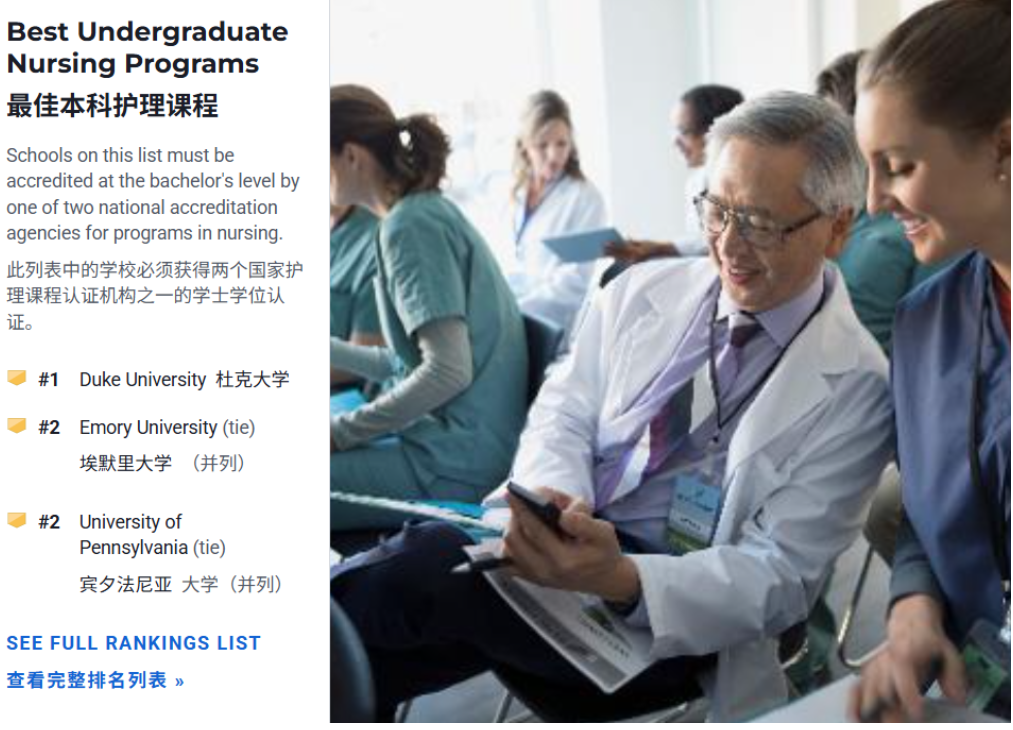 在 2026 年 U.S. News 护理本科排名中,杜克大学稳居第一,宾大和埃默里并列第二。