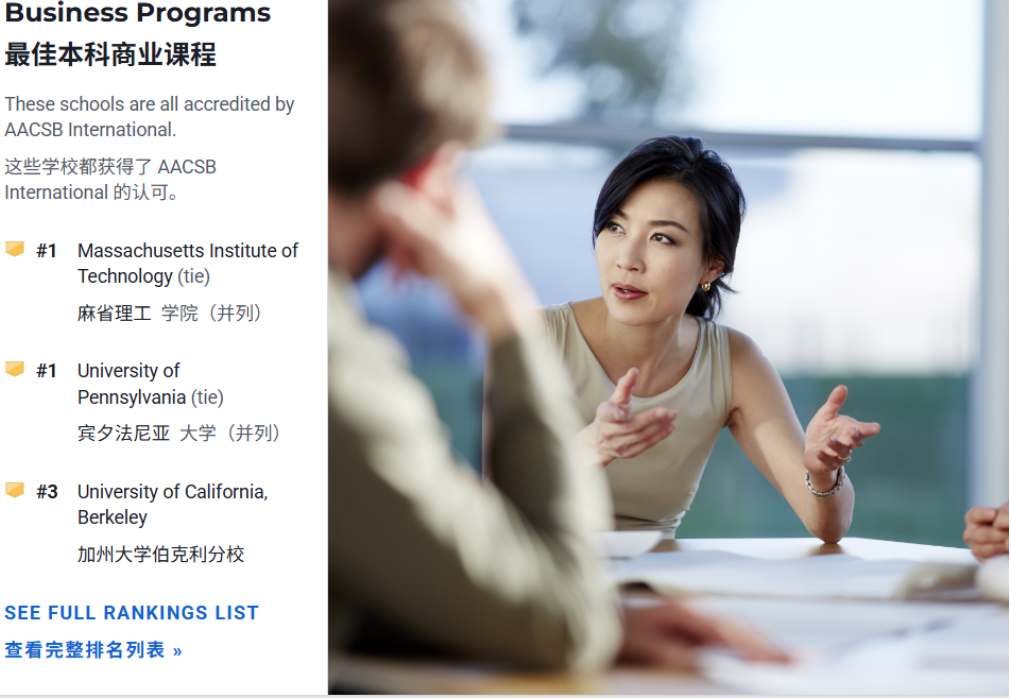在本科商科榜单中,MIT 与宾大并列第一,伯克利位居第三