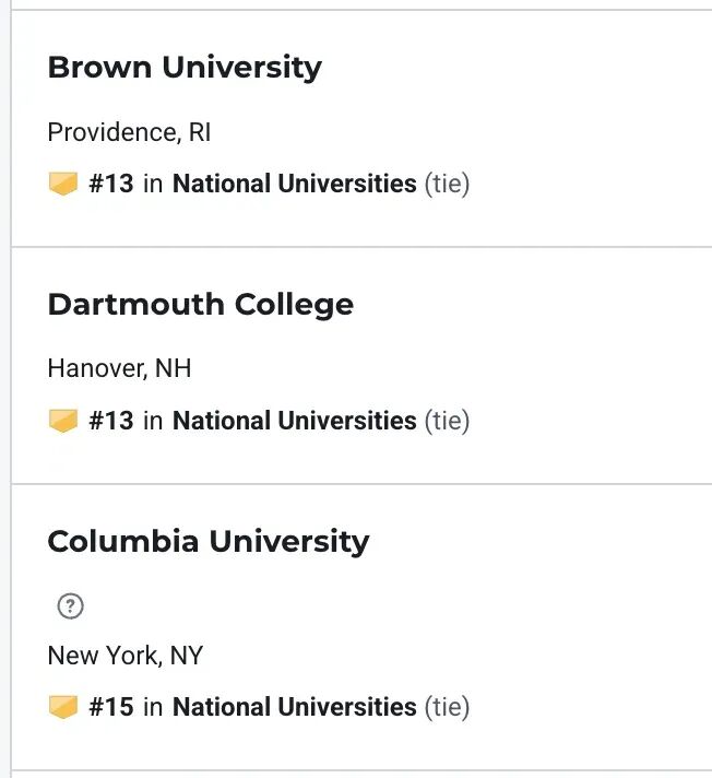 与此同时,常青藤内部的分化也在继续:普林斯顿、哈佛依旧强势,但哥大和布朗明显承压。