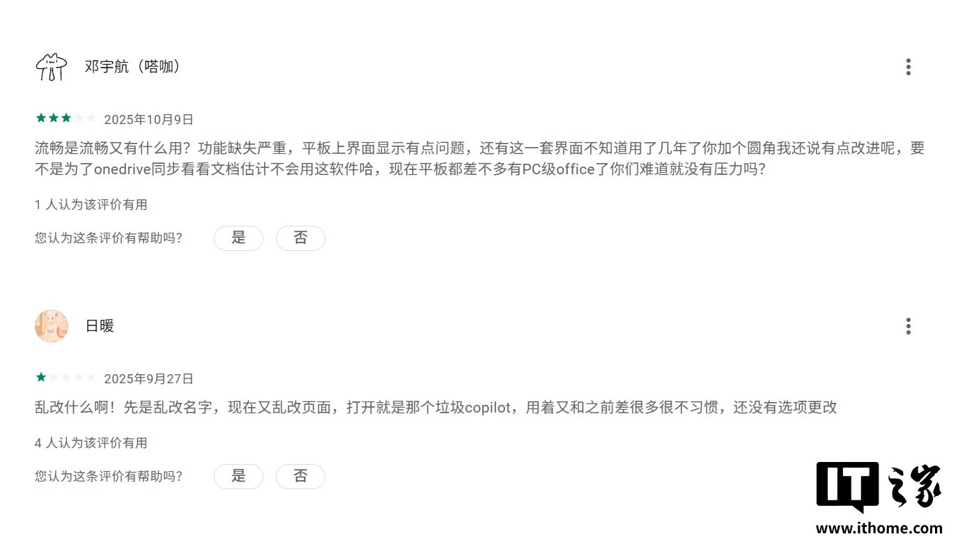 这一“Copilot 化”的更新策略,在用户社区引发了强烈的负面反响。在 Google Play 商店,Microsoft 365 应用的评分急剧下降,收到了数千条一星差评。