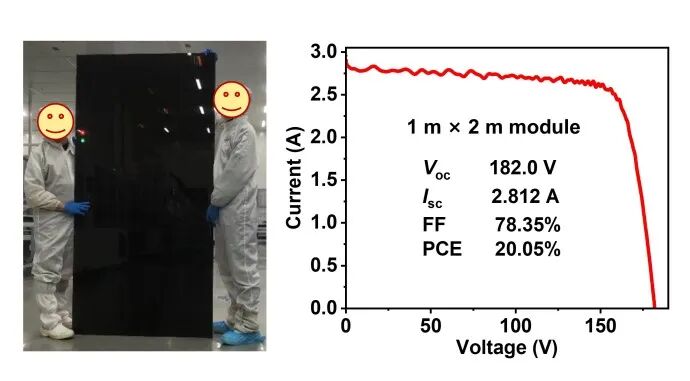该“基质限域分子层”策略对之前报道的多种 SAM 型空穴传输分子都适用,体现了优异的技术适用性,利用已有空穴传输分子即能实现有效的传输层及界面调控,减少了对复杂分子设计与合成的依赖性。该策略成功应用于 1 m× 2 m 大面积模组,成功获得了当前世界纪录的 20.05% 第三方认证效率。此项工作解决了制约大面积钙钛矿光伏模组发展的重大难题,为电荷传输层及界面设计提供了新思路。