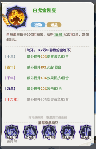受到攻击时,有40%概率获得最大生命值15%+(年份加成)的护盾2回合,冷却2回合
