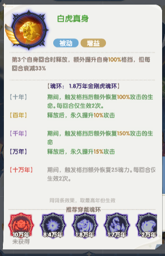 【十万年】期间,触发格挡额外恢复25魂力。每回合仅生效2次。