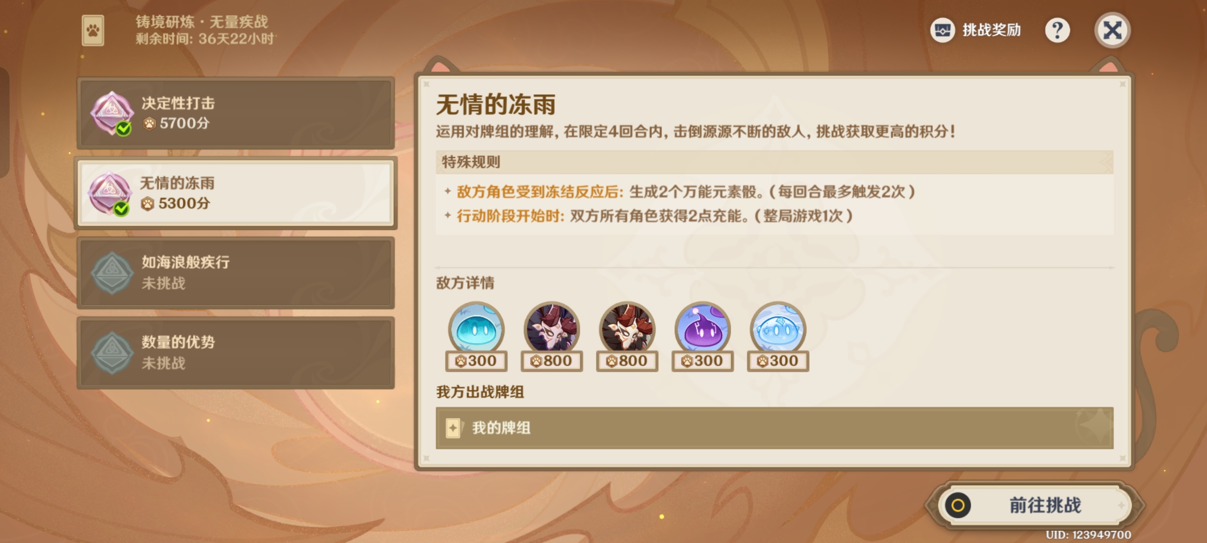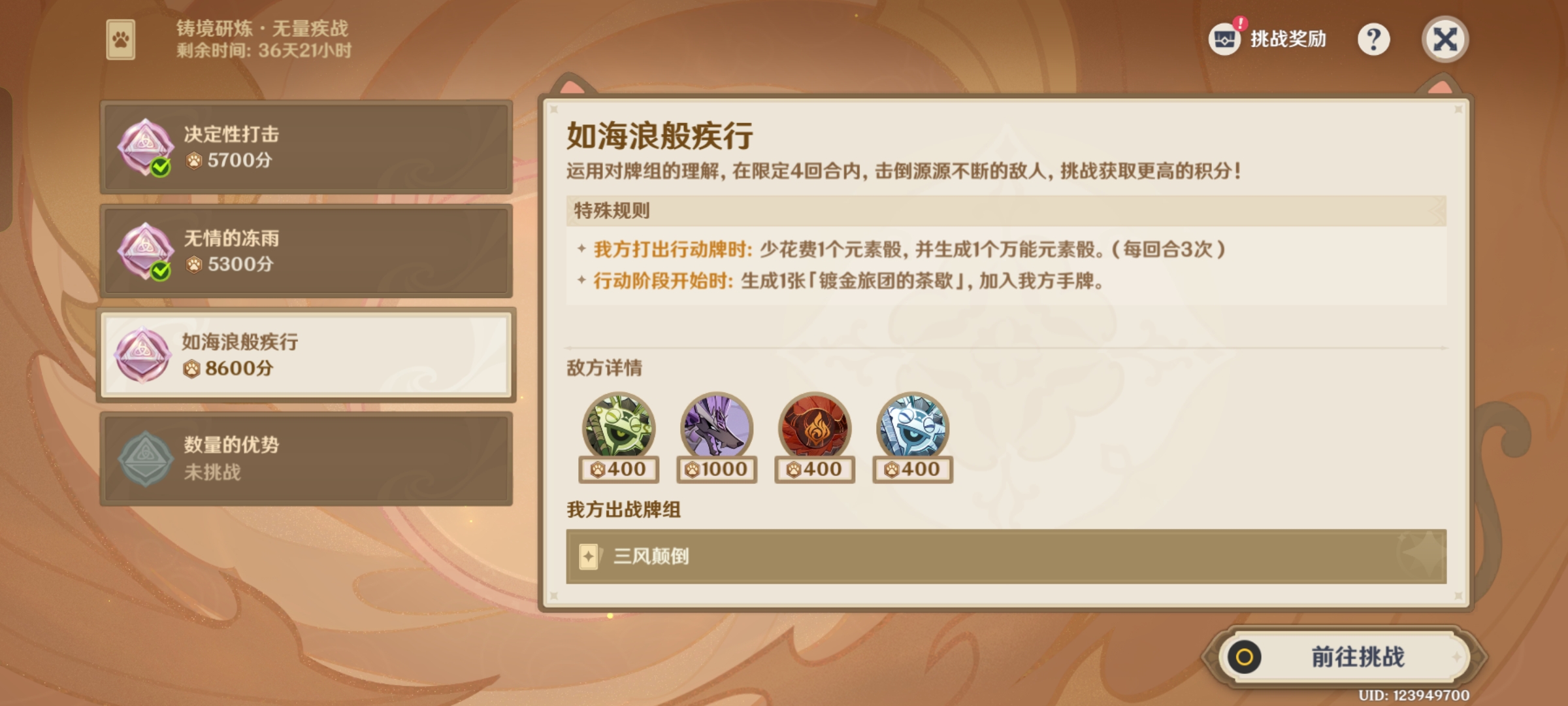 原神新铸镜研炼·无量疾战怎么过,下面为大家带来《原神》新铸镜研炼·无量疾战3000分通关攻略,按照下方打法只拿奖励3000积分绰绰有余,其实按照下方的打法最低也是5000分,赶快来试试吧。