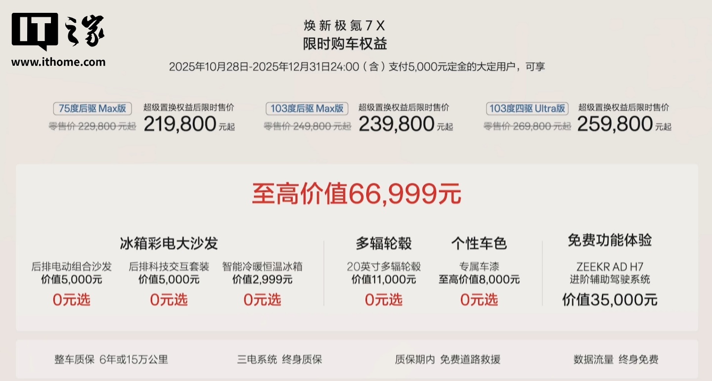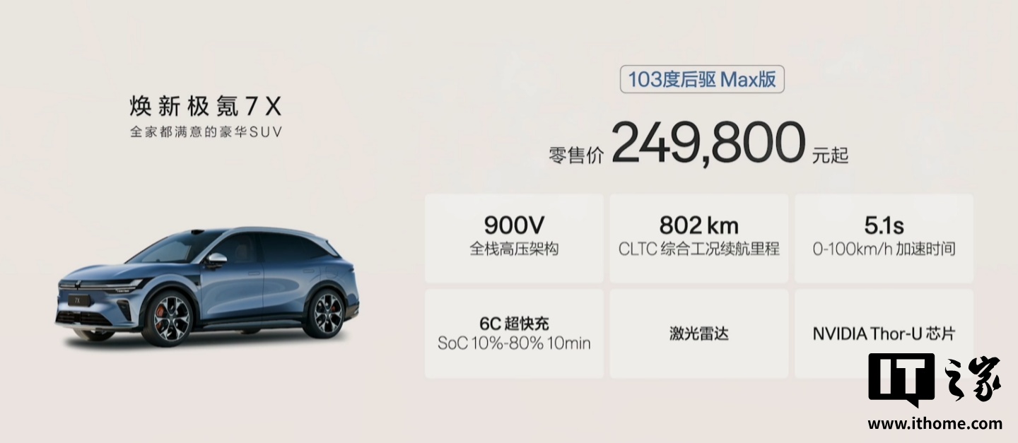焕新极氪 7X 提供三款配置,alixixi汇总主要信息如下: