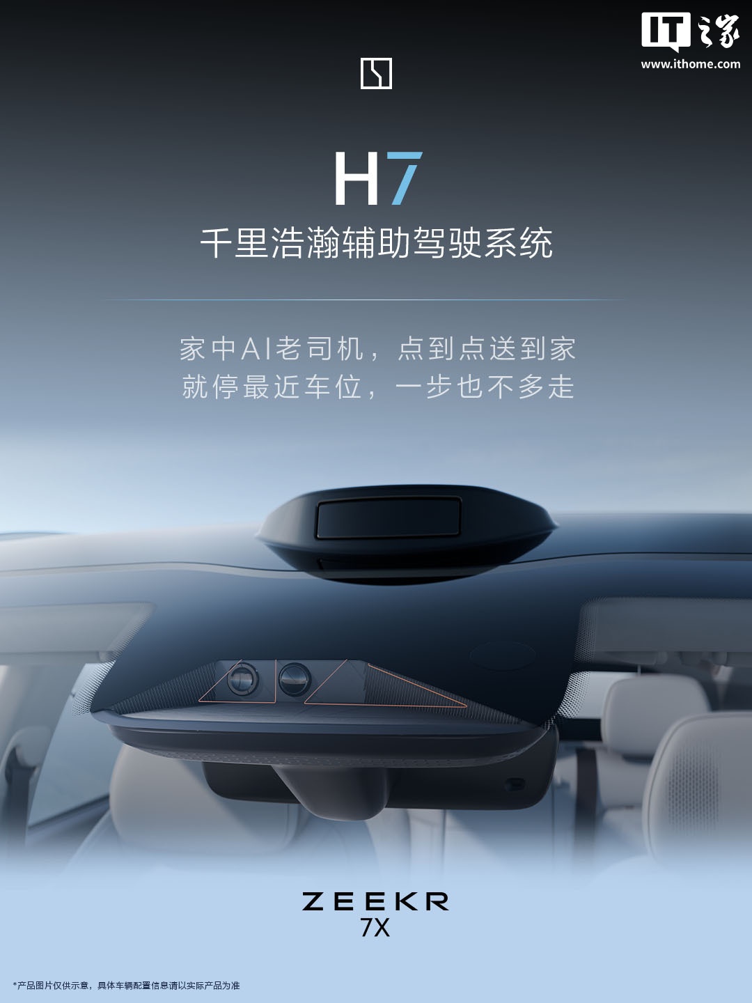 焕新极氪 7X 标配千里浩瀚辅助驾驶系统 H7,拥有 31 颗感知硬件及英伟达 Drive Thor-U 芯片加持,支持车位到车位领航辅助、城市自主领航辅助等功能。