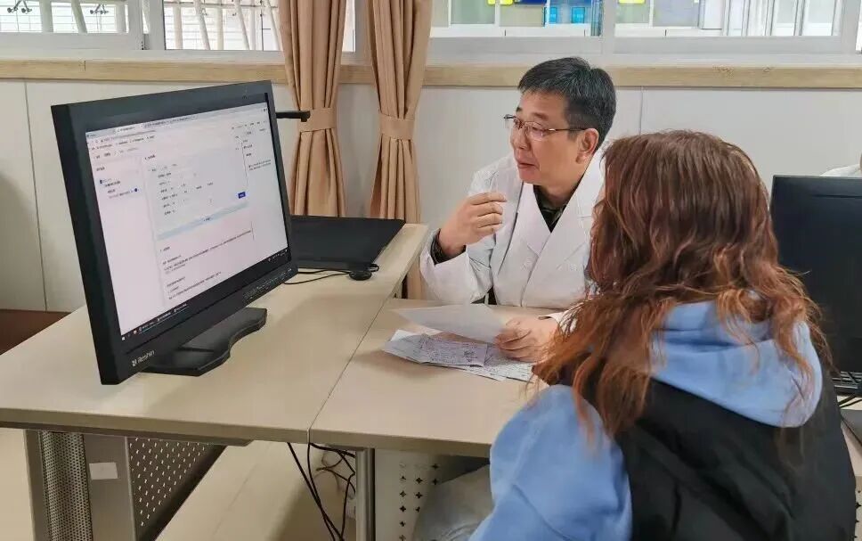 *西南医院胸外科主任王海东在肺癌 (肺结节)多学科人工智能门诊看诊。<医院供图>