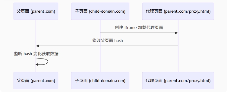 通过修改 URL Hash 实现父子 iframe 间单向数据传输,虽然勉强也能算作一种跨域方案,但由于 URL 的长度限制,数据量也不能太大,实际使用中也不简单,所以项目上也很难见到它的身影~~