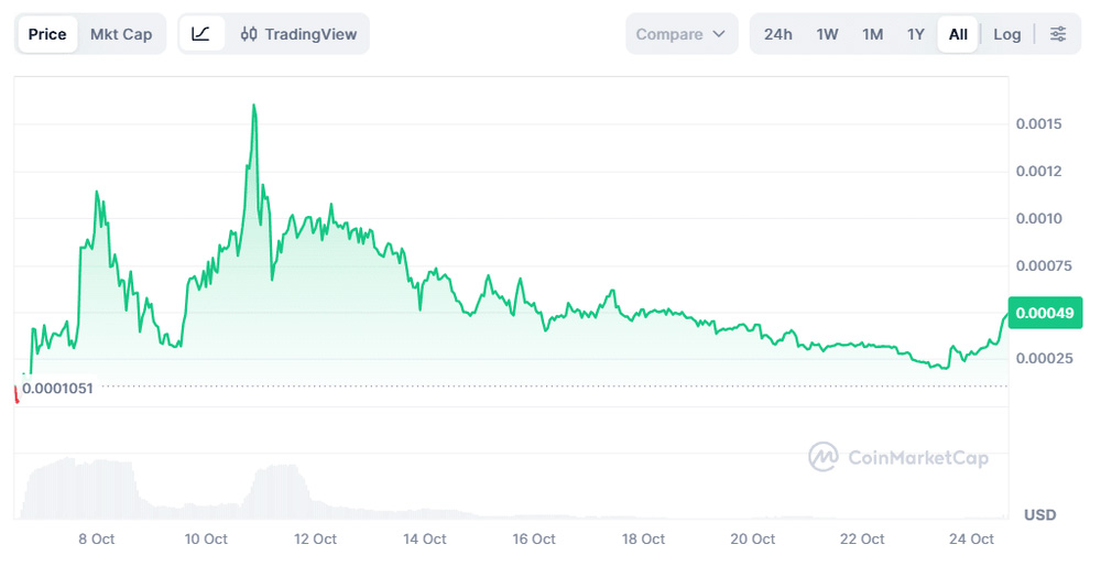 到十月末,该代币恢复并稳定在约$0.00049 附近,这表明持有者之间的信心回升以及更强的买方压力。