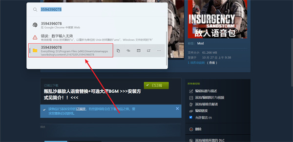 找到模组的下载位置,通常在SteamLibrarysteamappsworkshopcontent31670203594396078