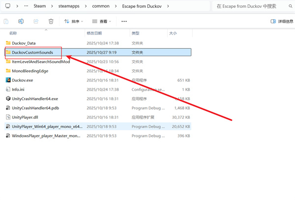 找到游戏根目录,寻找文件夹DuckovCustomSounds,如果这个文件夹不存在,就创建它。