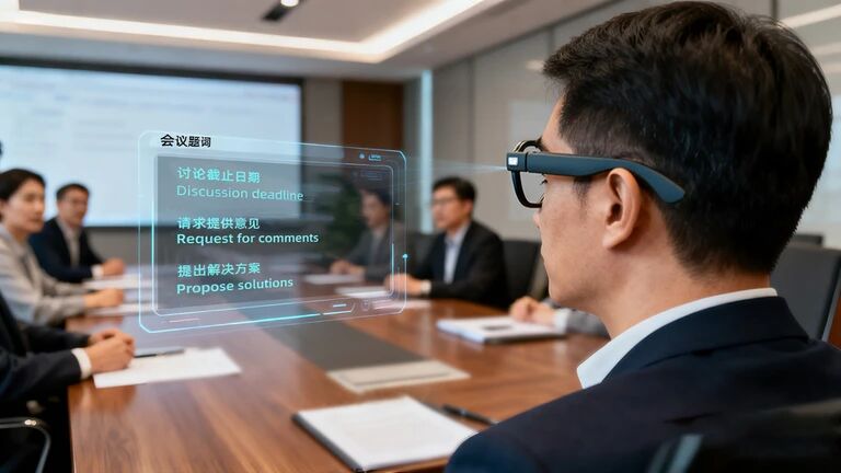 降噪精准收声,翻译质量有保障 360度空间感知系统 在现实生活中,嘈杂的环境常常会干扰我们的交流。利亚德AR眼镜凭借先进的技术,轻松攻克了这一难题,搭载360度空间感知系统,配合神经网络级层层降噪技术,能精准过滤掉嘈杂的声音,只留下您和对方最清晰的对话。此外,还能实现声纹分离,准确分辨出是谁在说话,让翻译更加精准! 产品以实物为准 同声传译,沟通零距离 无论您是出国旅行、参加国际会议,还是和来自世界各地的朋友聊天,语言不再是障碍。利亚德AR眼镜支持125+种语言及口音,可识别地方俚语、方言,甚至中国文言文。翻译准确率高达98%,延迟低于500ms,实现“秒懂”的流畅体验。 利亚德AR眼镜的“跟读提词器”,会根据您的语速和节奏,自动呈现相应的台词,让您能够全身心地投入到演讲内容中,不再为忘词而分心,助您展现出最自信、最精彩的一面。 利亚德AR眼镜内置利亚德自研大模型以及主流通用模型,您只需通过语言指令,就能轻松操控眼镜的所有功能。无论是开启翻译、查看提词,还是执行其他操作,都变得简单便捷,让使用过程更加流畅、更加自然。 此外,在会议场景中,利亚德AR眼镜能够自动记录您的会议内容,并清晰区分发言人。强大的AI大模型还能对纪要进行优化,帮助您高效回顾会议要点,节省宝贵时间。 在不远的将来,我们或许会迎来这样一个世界:语言不再成为人类相互理解的障碍,AR眼镜如同智能手机一样,成为每个人探索世界的基本配置。不同语言背景的人们可以自由交流思想、分享情感,迈向更深层次的融合与理解。