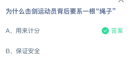 为什么击剑运动员背后要系一根“绳子”?支付宝小鸡课堂开课啦!每天花一分钟答题赚饲料,喂喂小鸡就能贡献爱心啦!轻松又意义十足!2025年10月30日蚂蚁庄园的小鸡课堂题目正确答案是【用来计分】,击剑绳上装有感应器,当运动员用剑尖击中感应器时,就会产生信号,判定运动员得分。